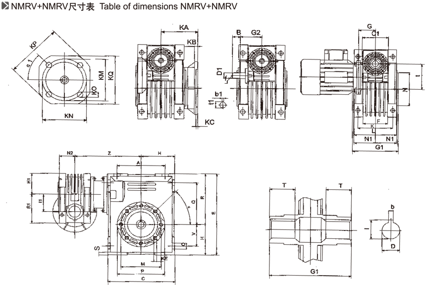 NMRV+NMRV雙蝸輪減速機標(biāo)記和尺寸表